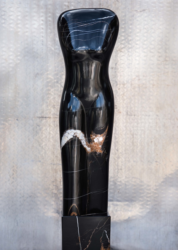 Carved from a single 10 tonne block of white Carrara marble, the spectacular work is an artistic interpretation of a 68-million-year-old sub-adult Triceratops Skull exhibited by David Aaron at Frieze Masters 2025. Measuring 3m high, 2.2m long, and 1.5m wide, the skull rests at a 20 degree angle on a grey-veined Carrara marble plinth.
