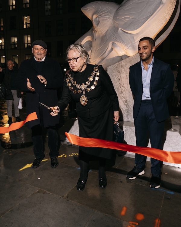 The Lord Mayor Locum Tenens, Honorary Alderman Frances Blois officially unveils the sculpture