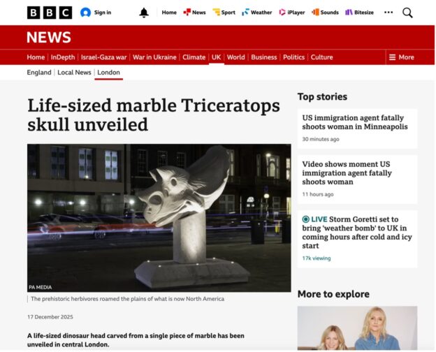 Berkeley Square swaps Nightingales for Dinosaurs as a Triceratops arrives