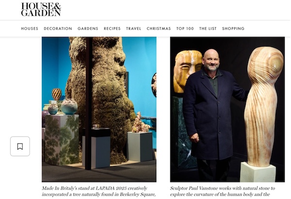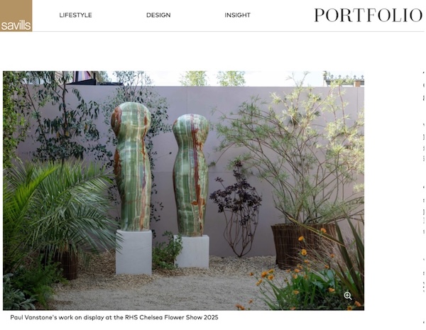 “We have definitely noticed an increase in people mixing indoor and outdoor sculpture, and having more continuity from one to the other – marble and onyx pieces are a good way of playing with this contrast,” says Paul Vanstone, a London-based artist who trained with Anish Kapoor and is a regular presence at the annual RHS Chelsea Flower Show.